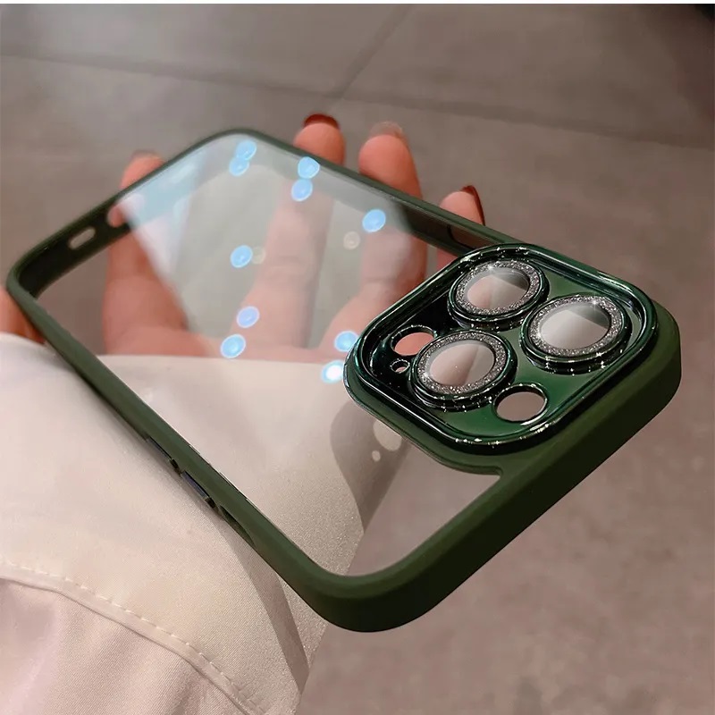Apple Iphone 11 Hoesje Camera Bescherming Glitter Transparant Groen